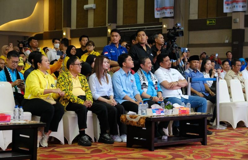 Mereka hadir dalam acara konsolidasi partai KIM Sumut yang digelar di Medan International Convention Center (MICC), Senin (18/11/2023) malam.