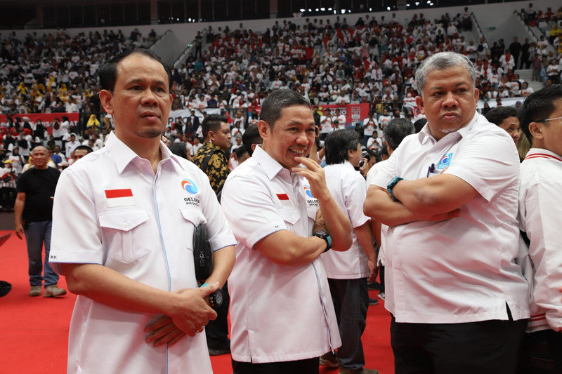 Rakernas IV Projo di Indonesia Arena, GBK itu dihadiri sejumlah ketua umum partai politik yang tergabung dalam Koalisi Indonesia Maju, antara lain Ketua Umum Partai Gelora Anis Matta, Wakil Ketua Umum Fahri Hamzah, dan Sekretaris Jenderal Mahfuz Sidik.