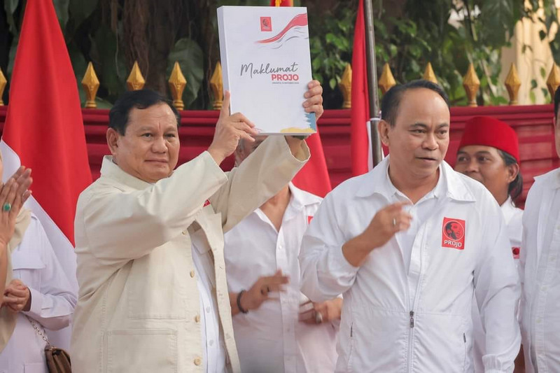 Namun, seusai menggelar Rakernas VI, Sabtu (14/10/2023) siang, Projo, salah satu simpul terbesar kelompok sukarelawan pendukung Jokowi di Pilpres 2014 dan 2019 lalu, resmi mendeklarasikan dukungan terhadap bakal calon presiden Prabowo Subianto.