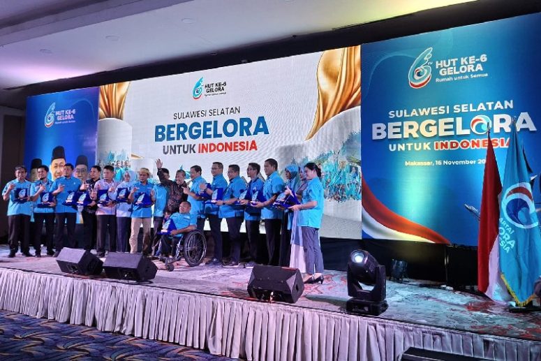Partaigelora.id-Partai Gelombang Rakyat (Gelora) Indonesia menggelar puncak HUT ke-6 di Ballroom Hotel Horison Ultima, Makassar, Sulawesi Selatan (Sulsel), Minggu (16/11/2025) sore.