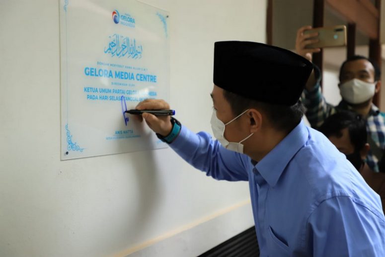 Peresmian Gelora Media Centre ditandai dengan penandatanganan prasasti dan pengguntingan pita oleh Ketua Umum Partai Gelora Anis Matta didampingi Sekretaris Jenderal (Sekjen) Mahfuz Sidik.