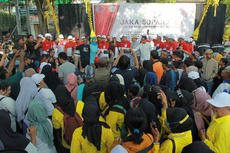 Hadir pada acara lomba jalan sehat Jaka Sopan 2023 di Bondowoso, sejumlah pimpinan partai politik yang tergabung dalam Koalisi Indonesia Maju (KIM) pendukung Ketua Umum Partai Gerindra Prabowo Subianto sebagai capres 2024.