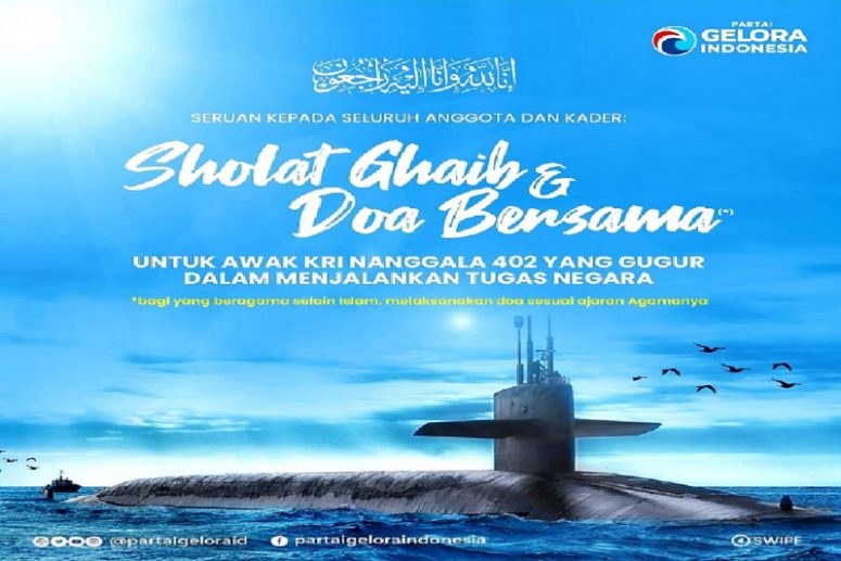 Partaigelora.id – Ketua Umum Partai Gelombang Rakyat (Gelora) Indonesia Anis Matta mengajak seluruh rakyat melakukan doa bersama dan salat gaib atas kepergian 53 awak kapal KRI Nanggala 402 yang tenggelam di Perairan Bali pada Sabtu (24/4/2021).