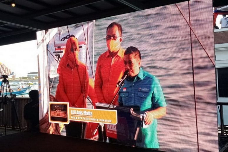 MAKASSAR – Ketua Umum Partai Gelora Indonesia, Anis Matta turut hadir dalam gelaran deklarasi kesiapan pasangan bakal calon Walikota dan Wakil Walikota Makassar Moh Ramdhan Pamanto-Fatmawati Rusdi (Danny-Fatma) di kapal Phinisi, Pantai Losari Makassar, Kamis (3/9/2020).