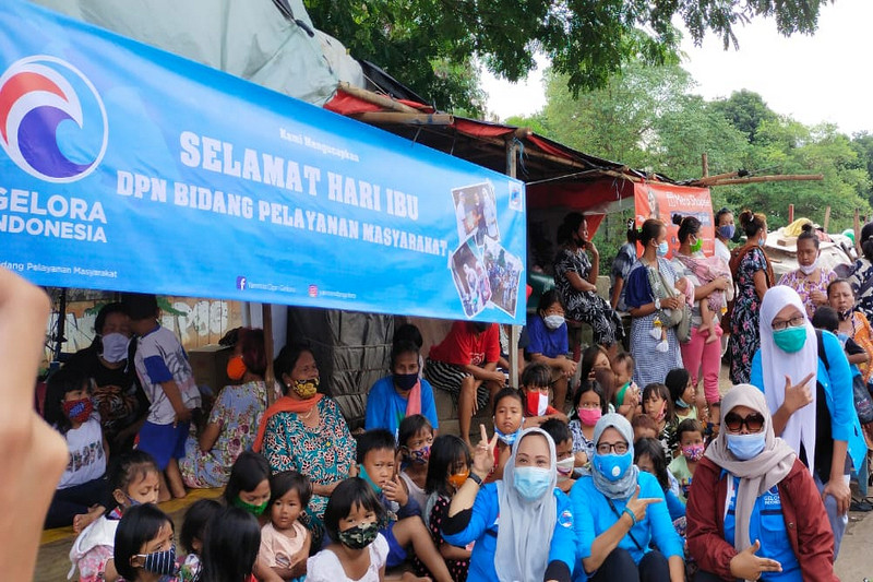 Partaigelora.id – Partai Gelombang Rakyat (Gelora) Indonesia memberikan apresiasi dan memberikan bantuan sembako kepada para Ibu-ibu pemulung di Kanal Banjir Barat, Kebon Melati, Tanah Abang, Jakarta Pusat pada Selasa (22/12/2020). Apresiasi dan bantuan tersebut diberikan Bidang Pelayanan Masyarakat (Yanmas) dalam rangka memperingati Hari Ibu ke 92 Tahun 2020.