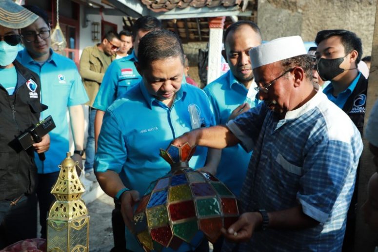 Anis Matta berdialog dengan dua pengrajin lampu gentur, Asep dan Habib Ali Alhabsyi. Asep mengakui, selama pandemi usaha lampu gentur tetap berjalan meski ada penurunan omset. Ia pun berinovasi membuat box hantaran pernikahan yang laku keras di pasaran