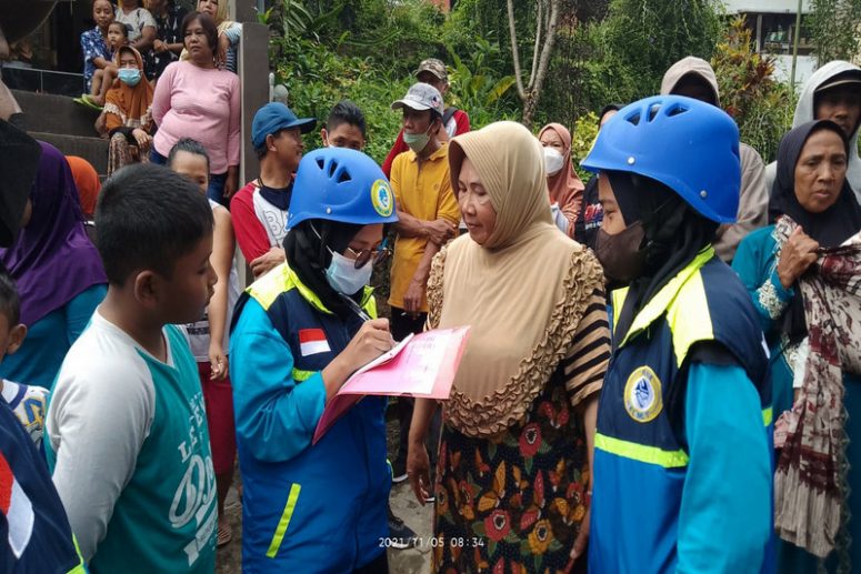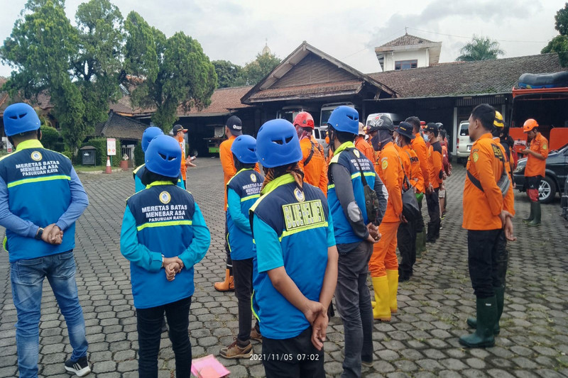 Relawan Blue Helmet Pasuruan Raya didampingi Ketua DPW Partai Gelora Jatim Muhammad Sirot langsung menuju Desa Punten Kota Batu, daerah yang terdampak cukup parah sekaligus tempat penampungan pengungsi.