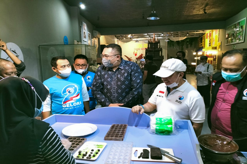 Anis Matta berkunjung ke Kabupaten Garut, Jawa Barat dan bersilaturrahmi dengan pendiri Chocodot, Kiki Gumelar, pembuat panganan atau makanan olahan dodol coklat asal Garut pada Sabtu (29/10/2021).