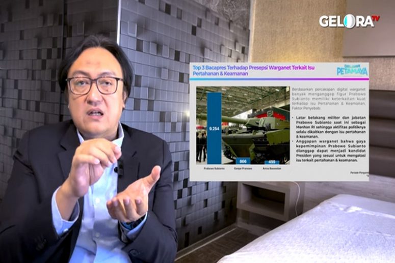 Hal itu disampaikan Endy saat menyampaikan hasil riset digital Gelora Petamaya bekerja sama dengan Lembaga Riset Digital Cakradata dengan tema ‘Menyongsong Pemilu dan Pilpres 2024 Isu Pertahanan & Keamanan’.