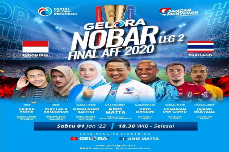 Partaigelora.id – Partai Gelombang Rakyat (Gelora) Indonesia kembali menggelar acara nonton bareng (nobar) leg kedua Final Piala Suzuki AFF antara Indonesia melawan Thailand di Singapore National Stadium pada Sabtu (1/1/2022) malam ini.