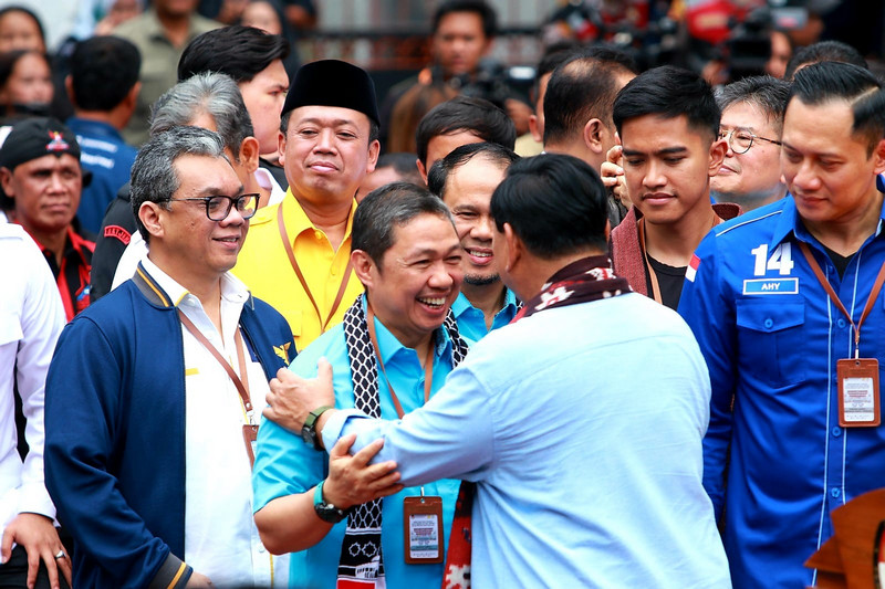 Di lokasi tampak sejumlah ketua umum (KIM) partai KIM, seperti Ketum Partai Golkar Airlangga Hartarto, Ketum Partai Demokrat Agus Harimurti Yudhoyono, Ketum PAN Zulkifli Hasan dan Ketum Partai Gelora Anis Matta.
