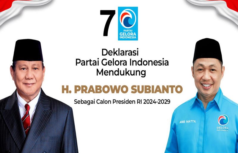 “Alhamdulillah, pada pertengahan Agustus lalu, kami sudah menerima surat dukungan dari 38 pimpinan wilayah tingkat propinsi yang mewakili 514 pimpinan daerah tingkat kabupaten/kota. Mereka semua bulat bersepakat mendukung Prabowo Subianto sebagai capres dukungan Partai Gelora Indonesia,” katanya.