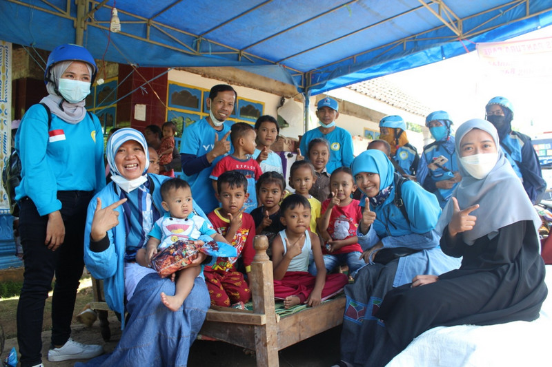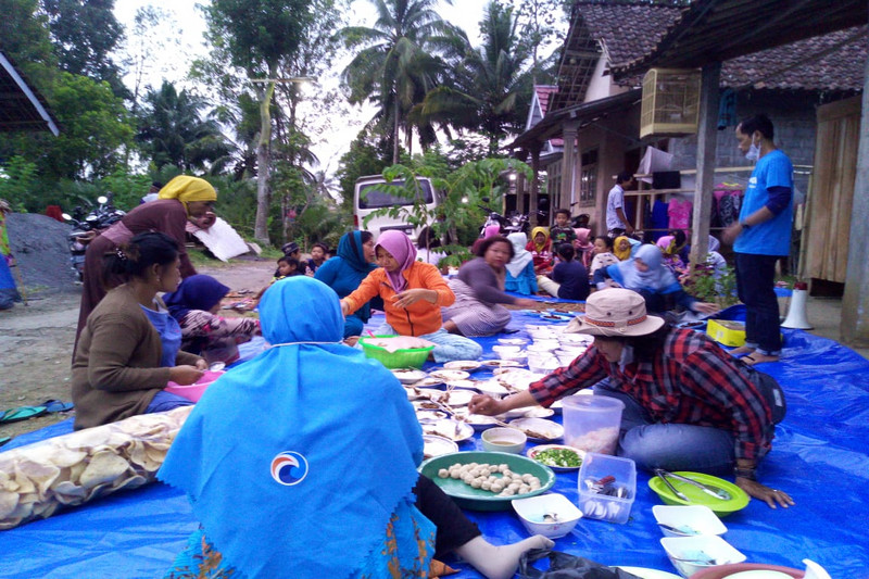 Selain memberikan trauma healing, kegiatan Blue Helmet di Desa Sidomulyo, Pronojiwo, Kabupaten Lumajang ini dilanjutkan dengan buka bersama dengan warga.