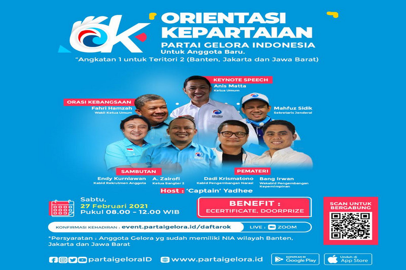 “Semua anggota yang mendaftar akan mengikuti program Orientasi Kepartaian (OK Gelora) dalam paket program yang sudah disiapkan,” ujar Mahfuz.