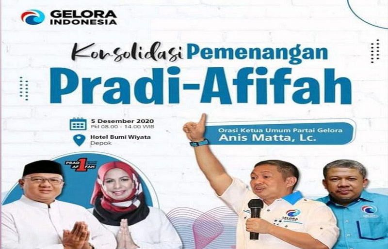 Konsolidasi Pemenangan Pradi -Afifah ini, juga akan menjadi ajang konsolidasi akbar Gelora Depok . Sehingga kader Partai Gelora di Depok dan sekitar akan tumpah ruah memenuhi Hotel Bumi Wiyata, Depok, Jawa Barat.